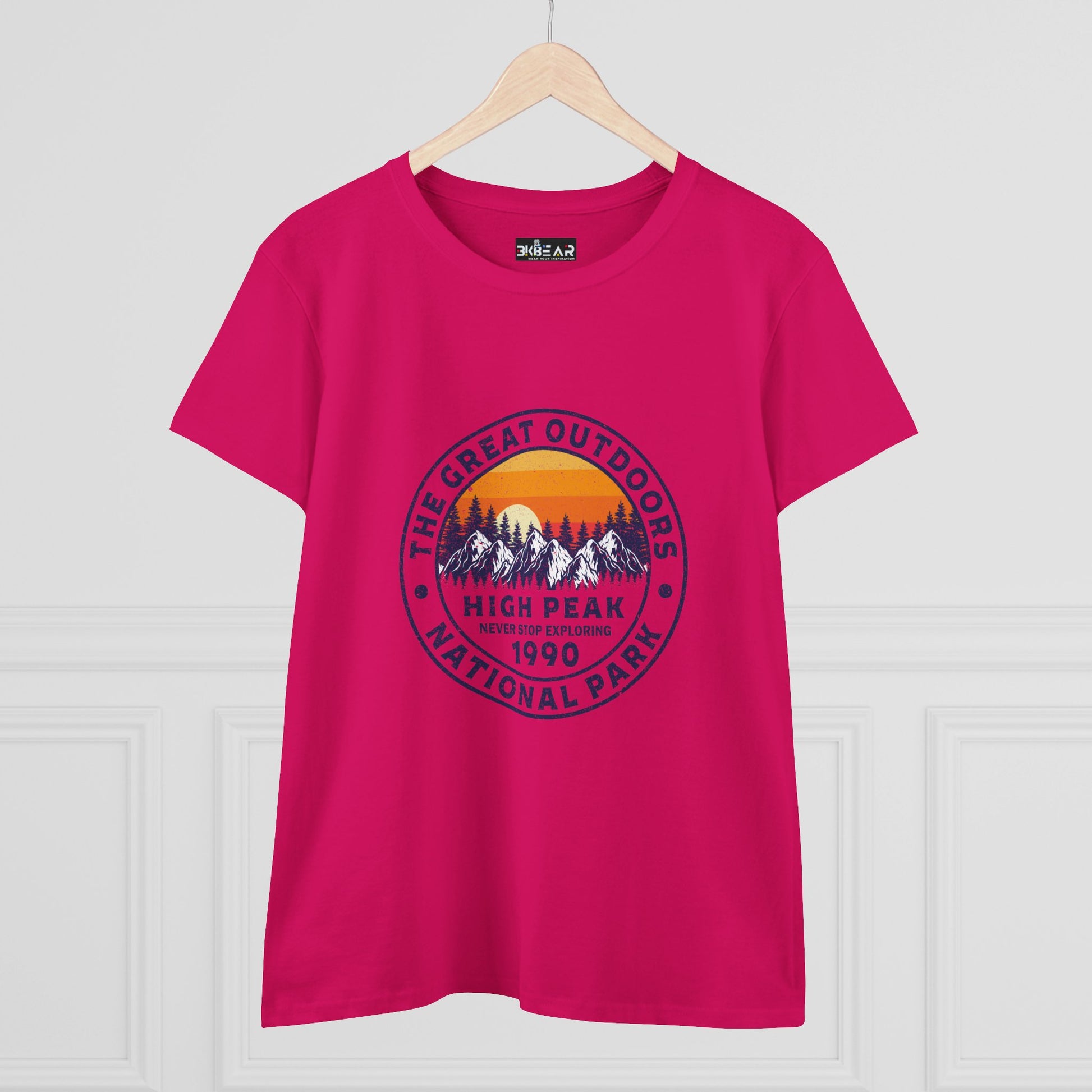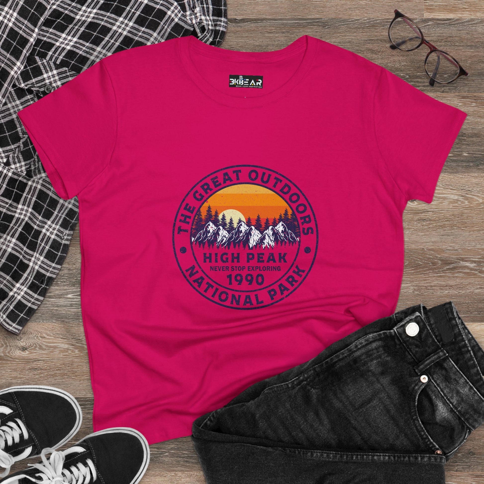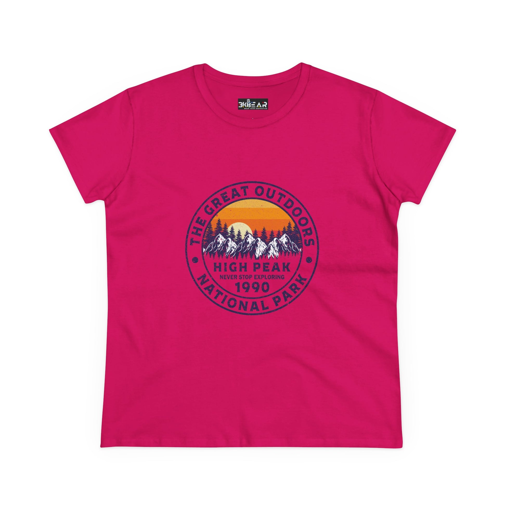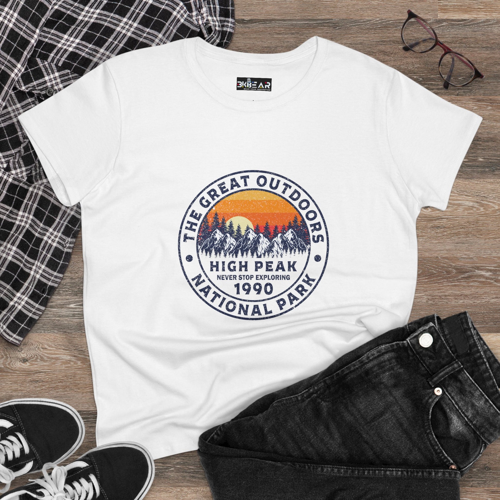 Where wanderlust meets wardrobe. This national park t-shirt for women is made for explorers, hikers, and daydreamers who find peace where the pavement ends. Inspired by High Peak National Park, this tee reminds you to never stop exploring—whether you're blazing trails or sipping coffee on the porch.