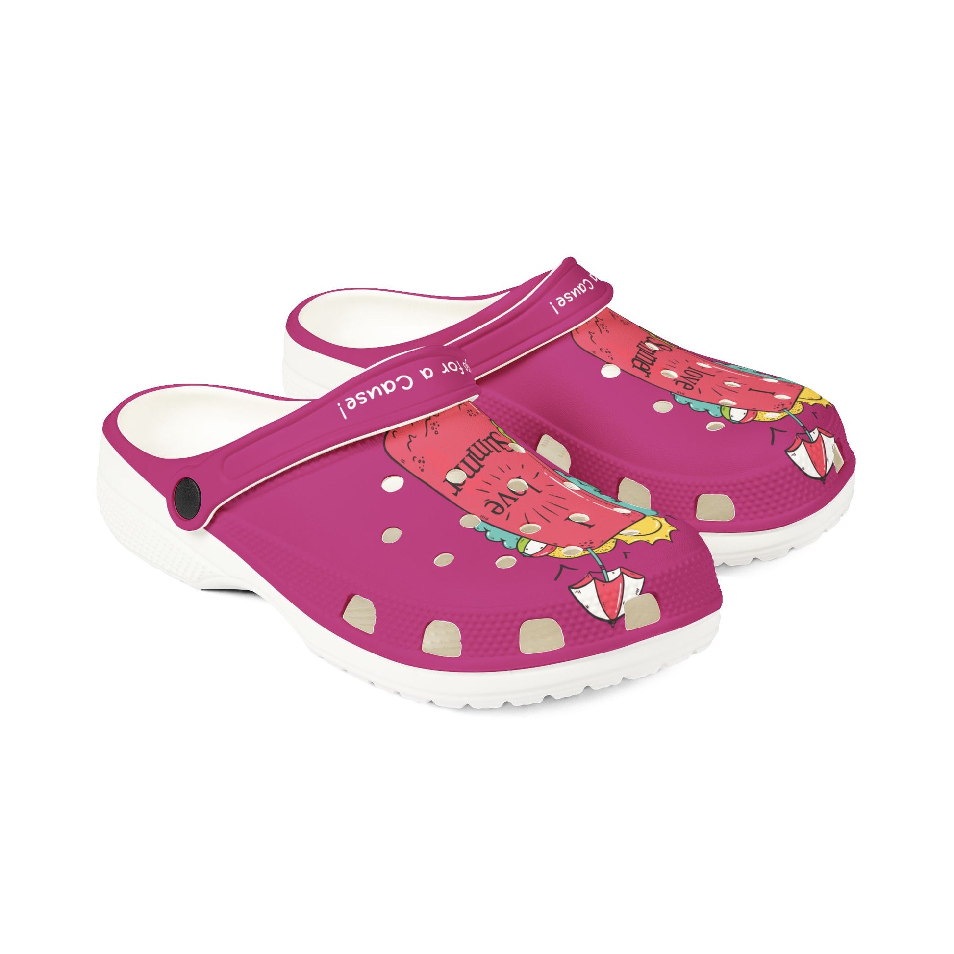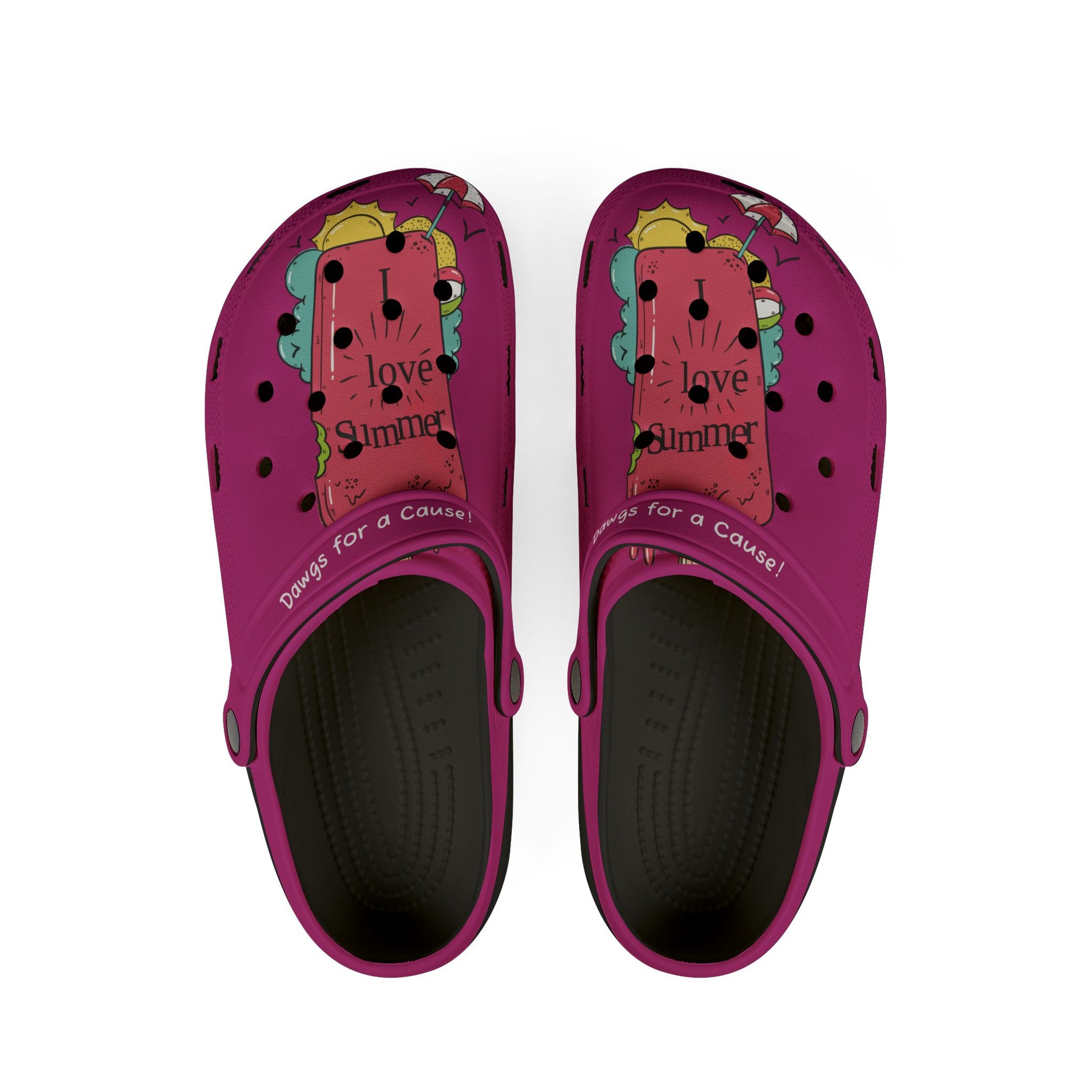 Fun summer vibe clogs featuring a colorful popsicle design. Perfect for those who love the summer season and want to add a playful touch to their footwear collection. Ideal for wearing both indoors and outdoors, these trendy clogs provide great comfort and anti-slip performance. Relevant for summer holidays and beach outings.