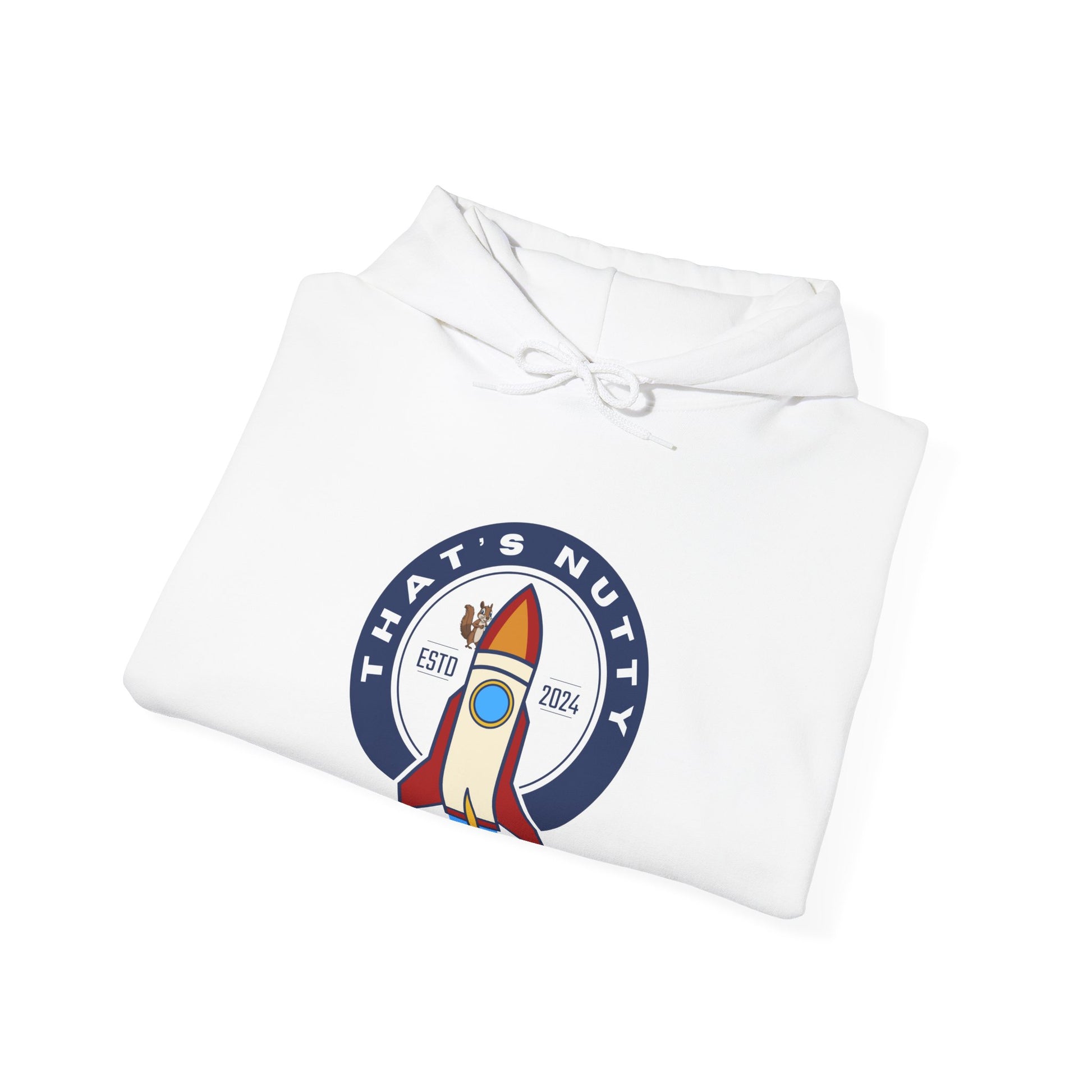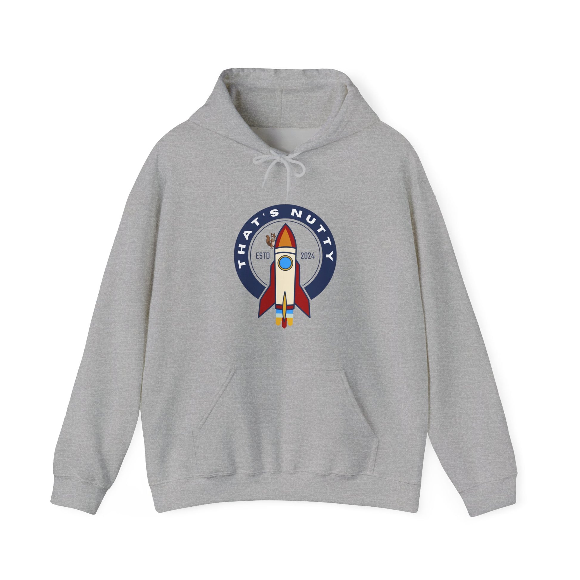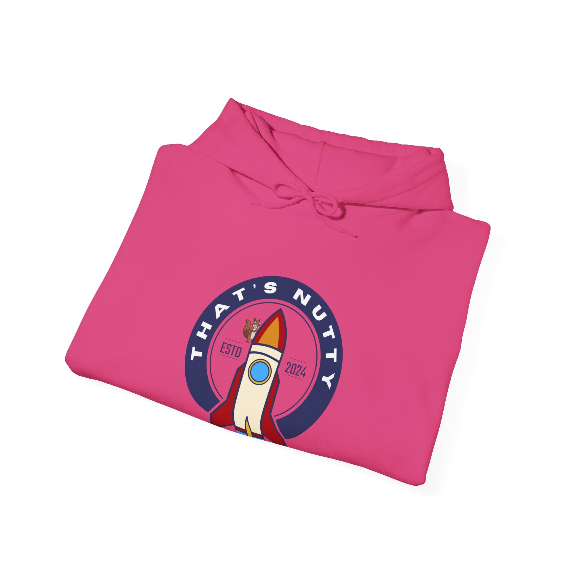 Get ready to blast off in style with this 'That's Nutty On A Rocket Ship' hoodie. Perfect for those who love whimsical designs and want to stay cozy and warm. Ideal for individuals looking for a fun and unique hoodie to wear during casual outings or while relaxing at home. Great for occasions like birthdays, comic conventions, and movie nights.
