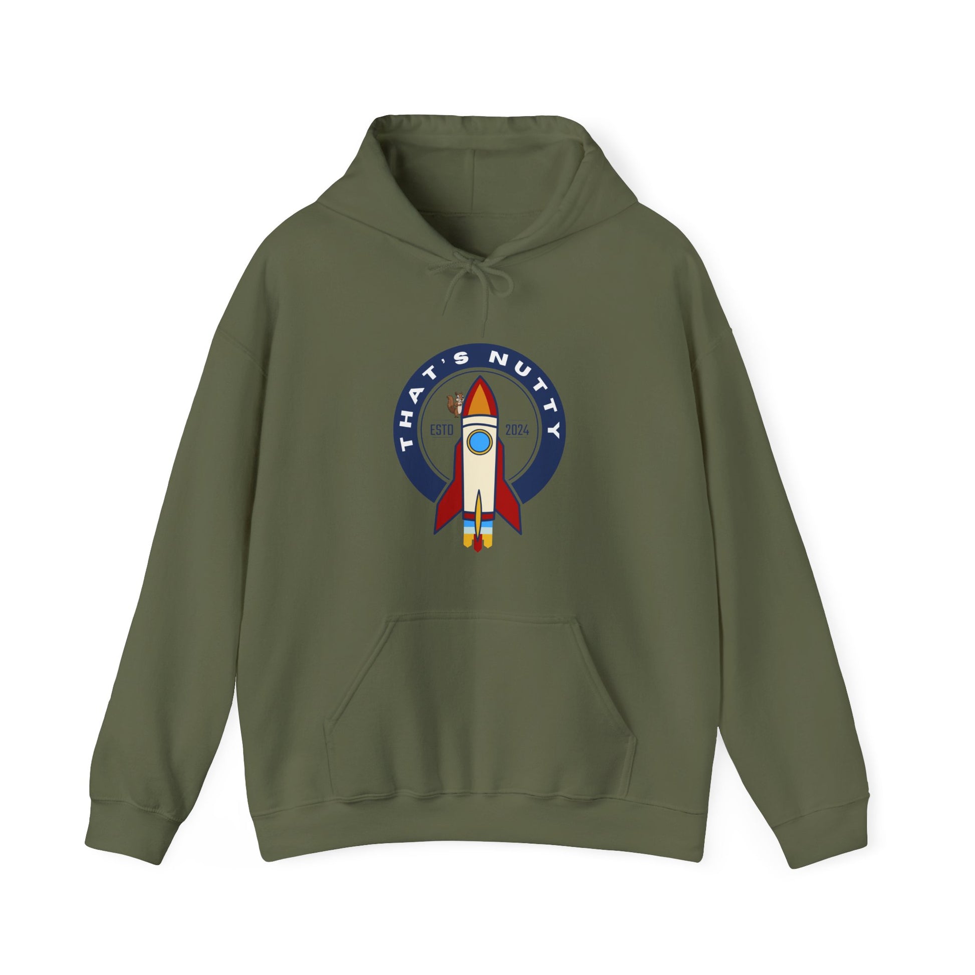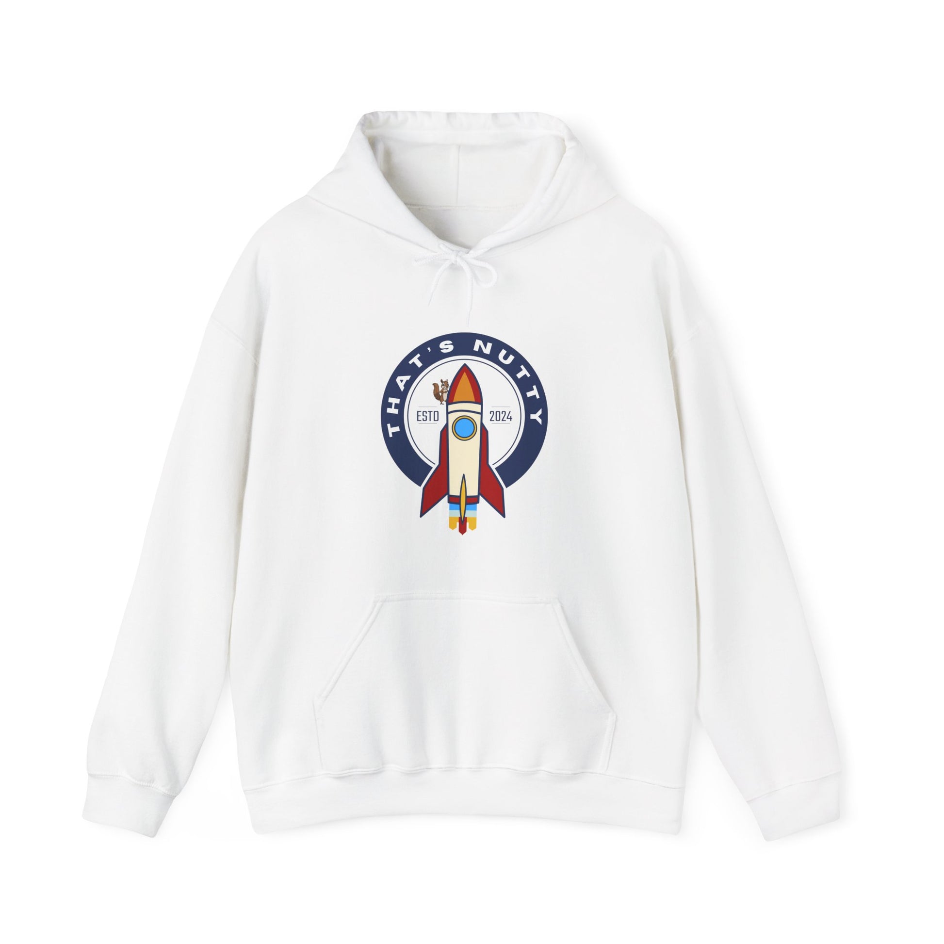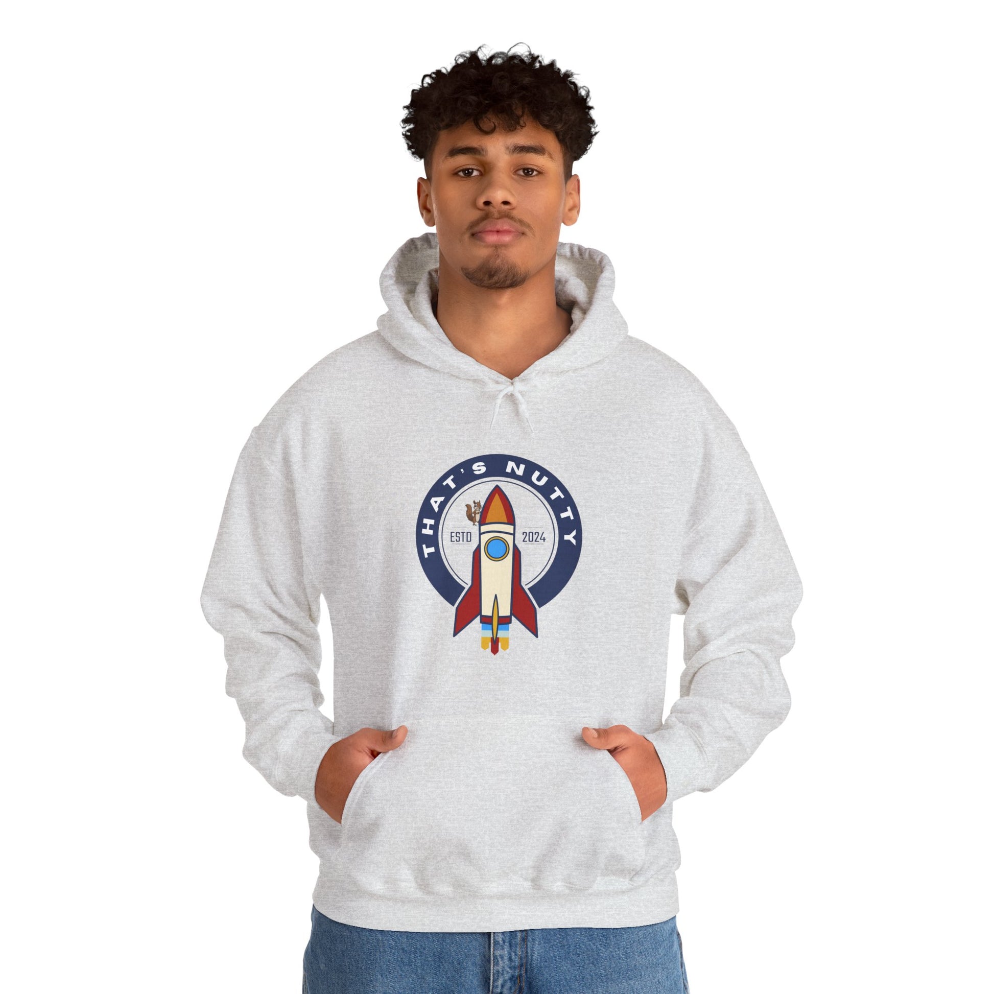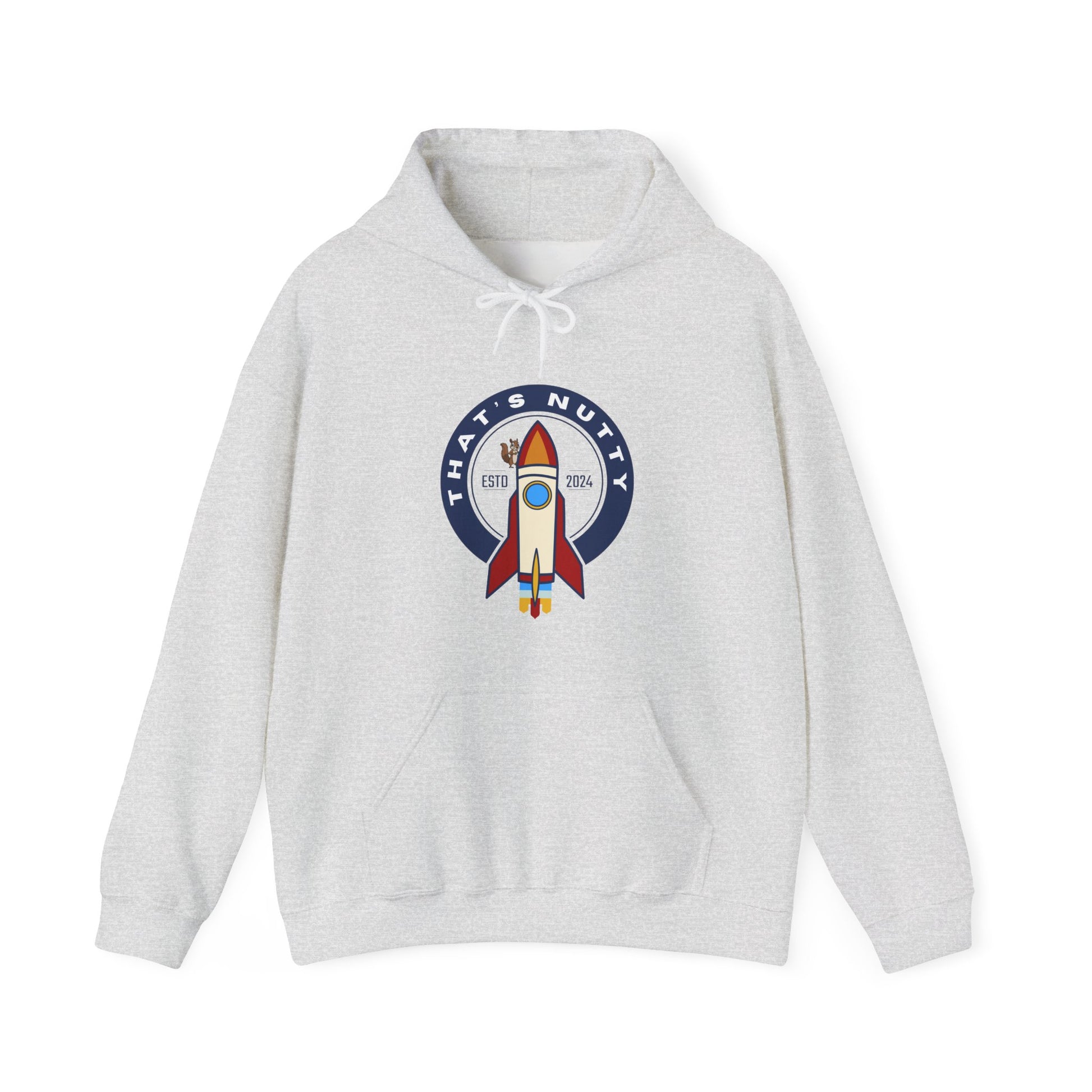 Get ready to blast off in style with this 'That's Nutty On A Rocket Ship' hoodie. Perfect for those who love whimsical designs and want to stay cozy and warm. Ideal for individuals looking for a fun and unique hoodie to wear during casual outings or while relaxing at home. Great for occasions like birthdays, comic conventions, and movie nights.